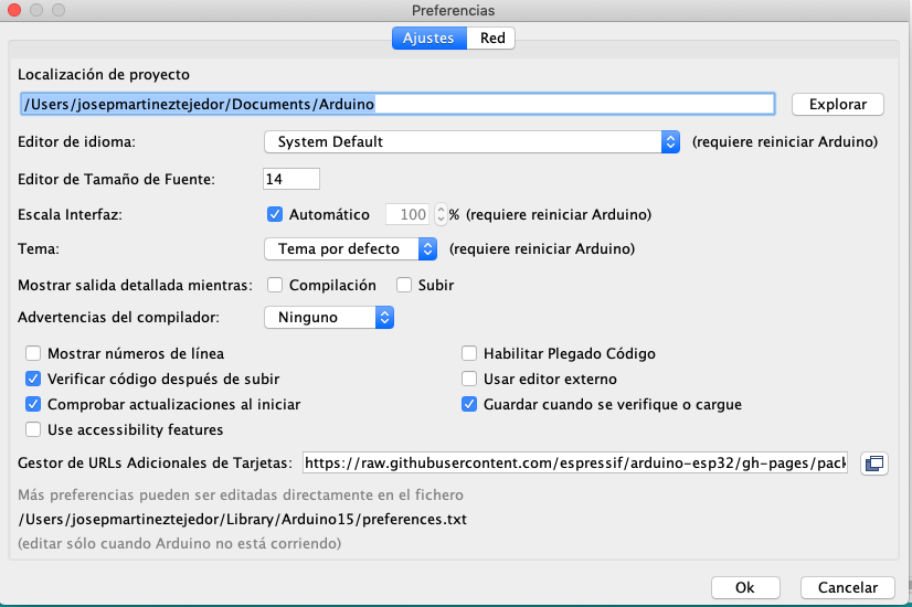 1.- Lo primero que hemos de hacer es abrir las preferencias de nuestro Arduino y pegar la siguiente dirección, si por algún motivo ya tenéis alguna instrucción, la tenéis que pegar a continuación separadas de una coma seguida de un espacio: