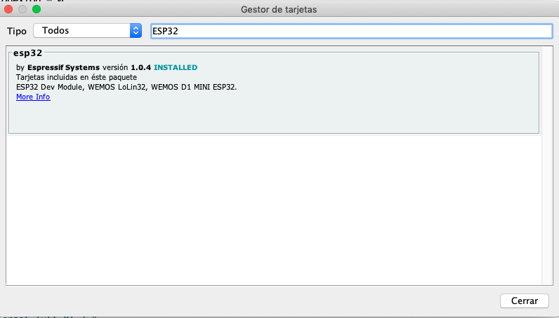 2.- A continuación, nos hemos de dirigir a la pestaña de Herramientas ==> Gestor de placas e instalamos la ESP32.